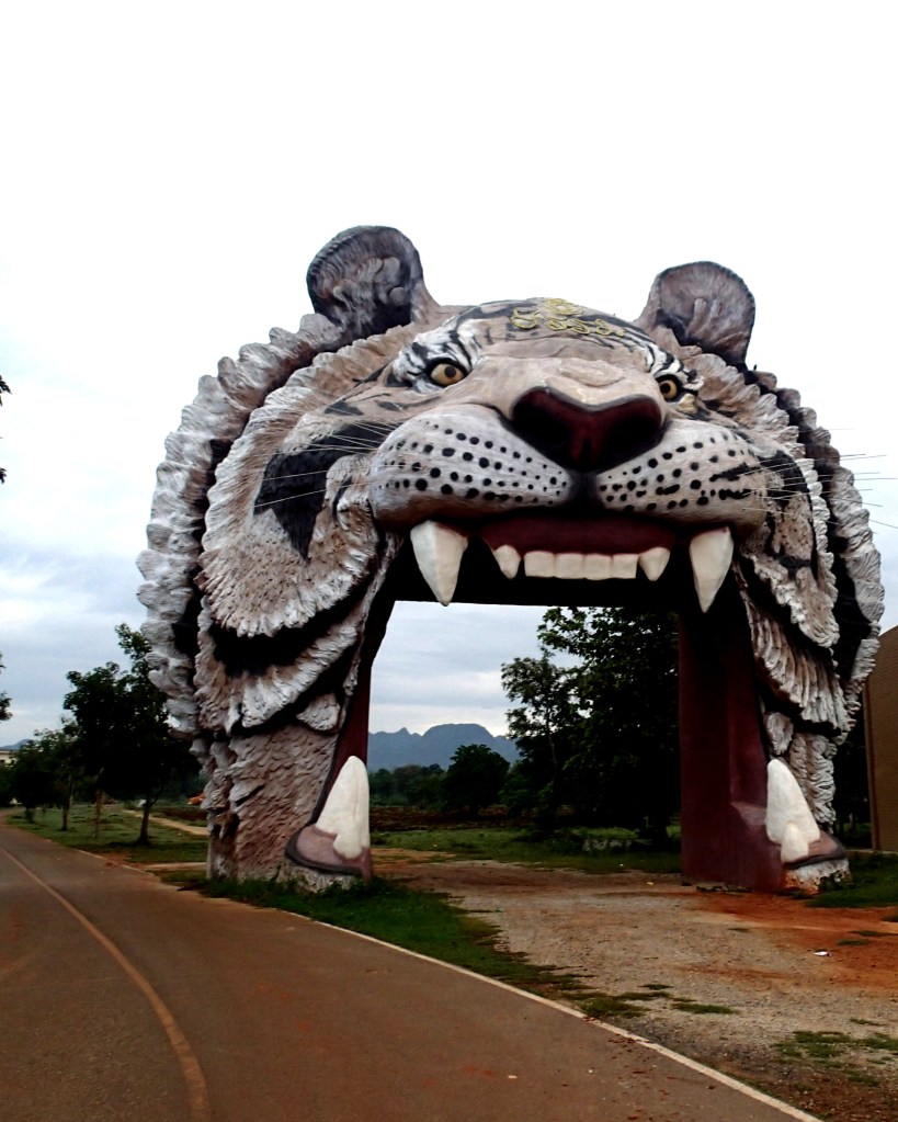 The entrance of Tiger Temple was glaringly hard to miss. While I expected this tiger encounter to be somewhat of a tourist attraction, all my research led me to believe this sanctuary run by Buddhist monks was a holy place where orphaned tiger cubs had been given homes…but instead it appeared we were driving into a cartoon version of an amusement park—literally through the mouth of a giant tiger…